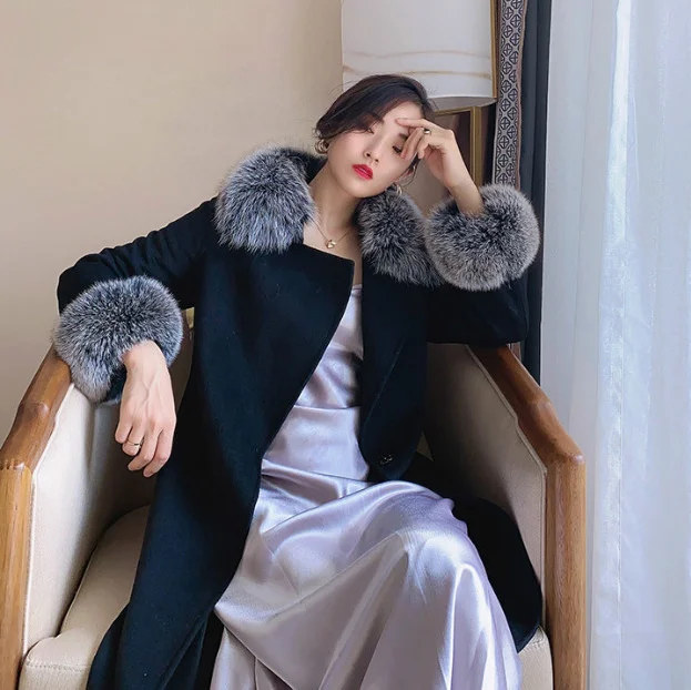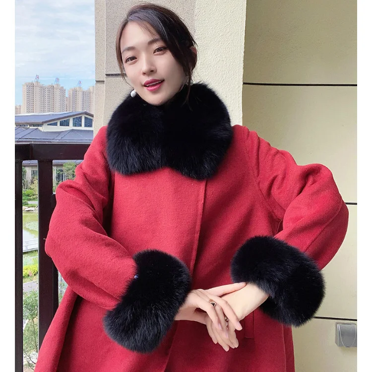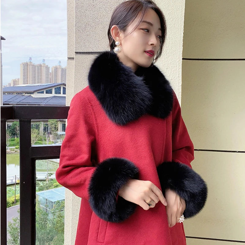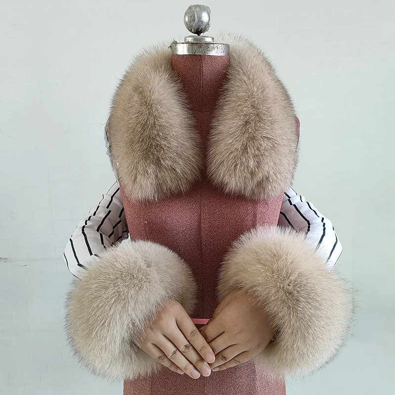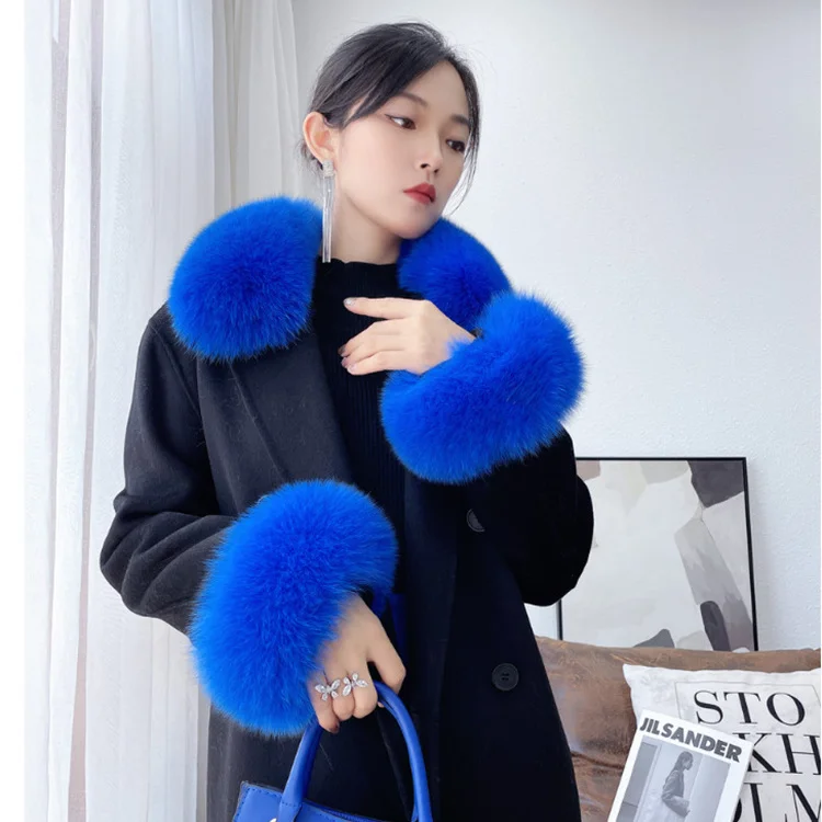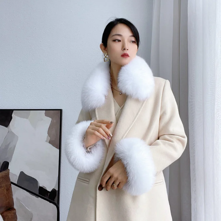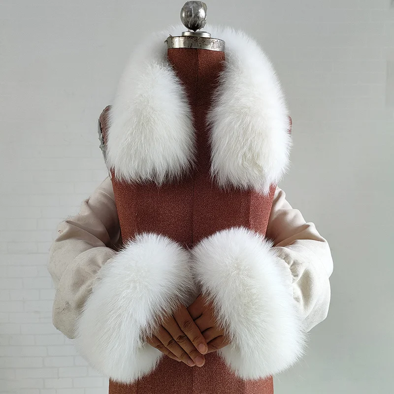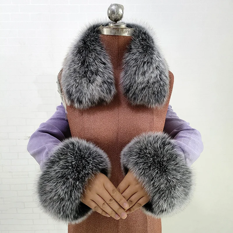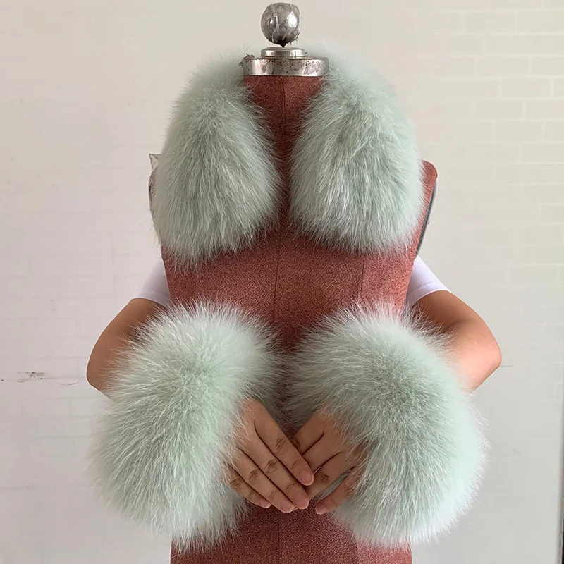 100% Real Fox Fur Collar Winter Coat Hood Fur Scarf Cuffs Set Jacket Match Overcoats Accessory Women Neck Warmer Scarves