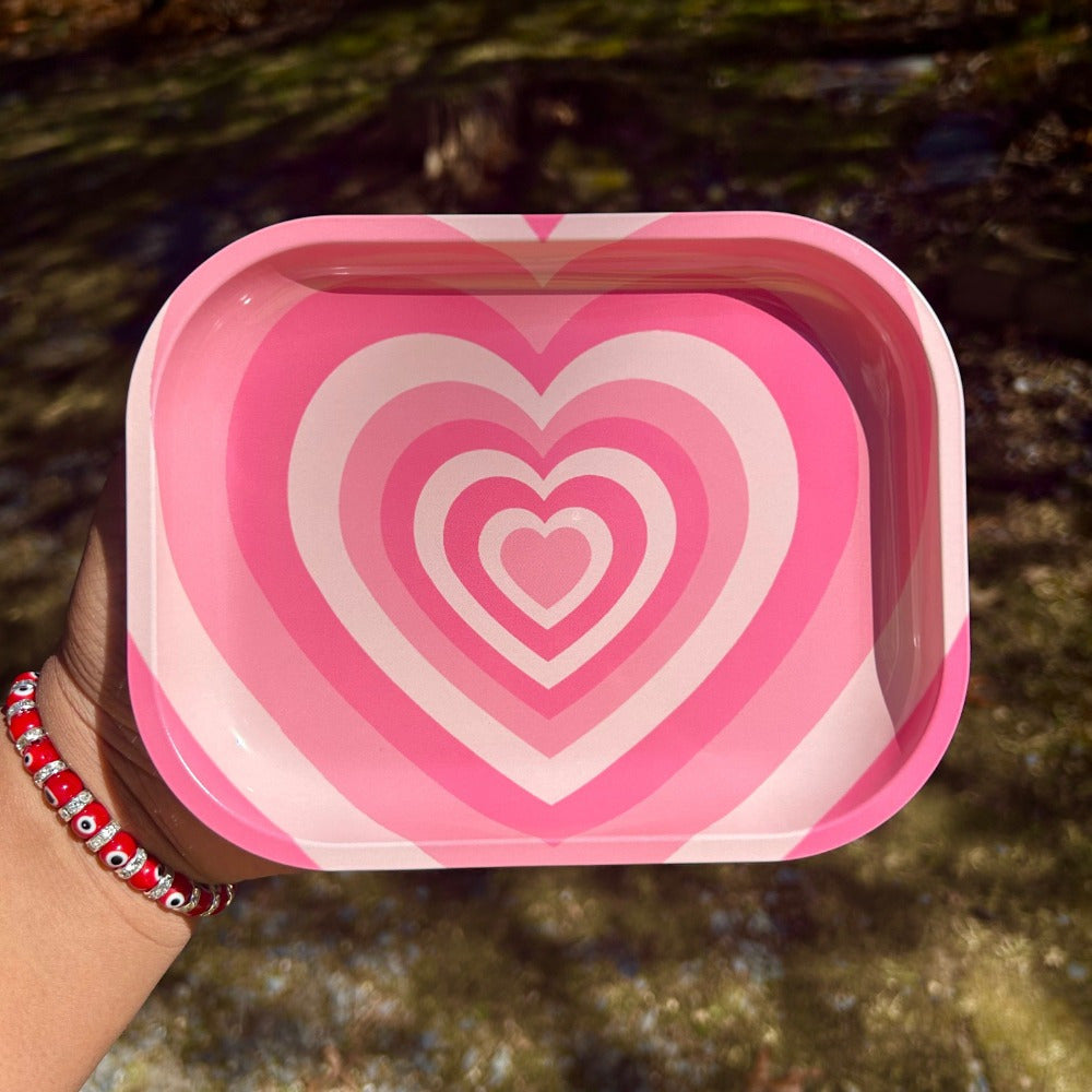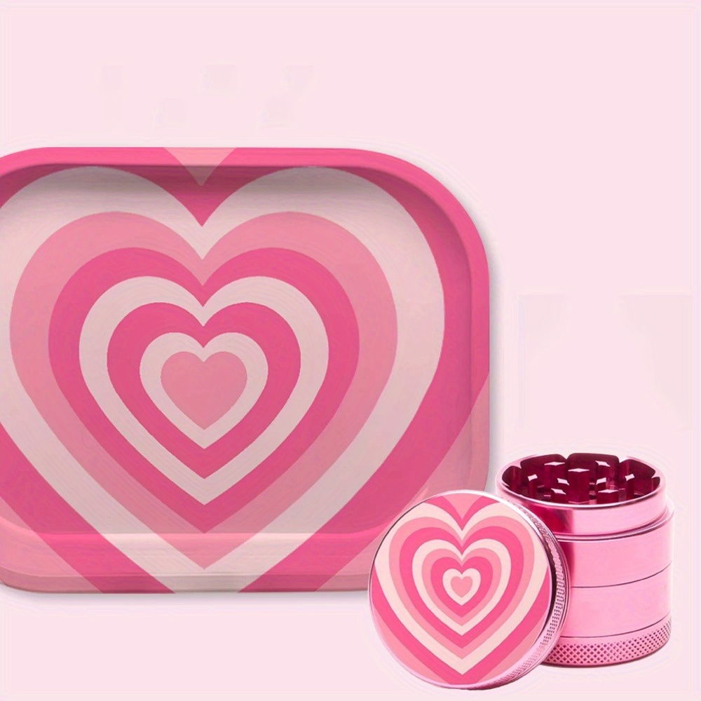 2 Pieces LOVE Heart Herb Grinder Roling Tray Combo Girly PINK Tobacco Kits