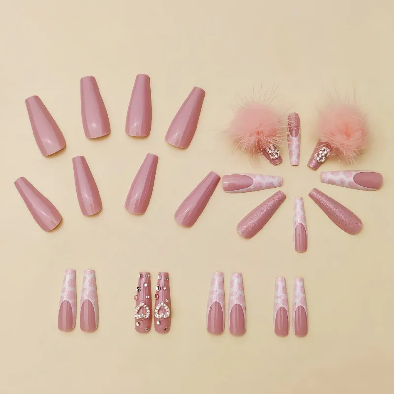 24Pcs Extra Long Square Press on Nails Love Pattern Design French Wearable Full Cover Fake Nail Tips Artifical Coffin False Nail