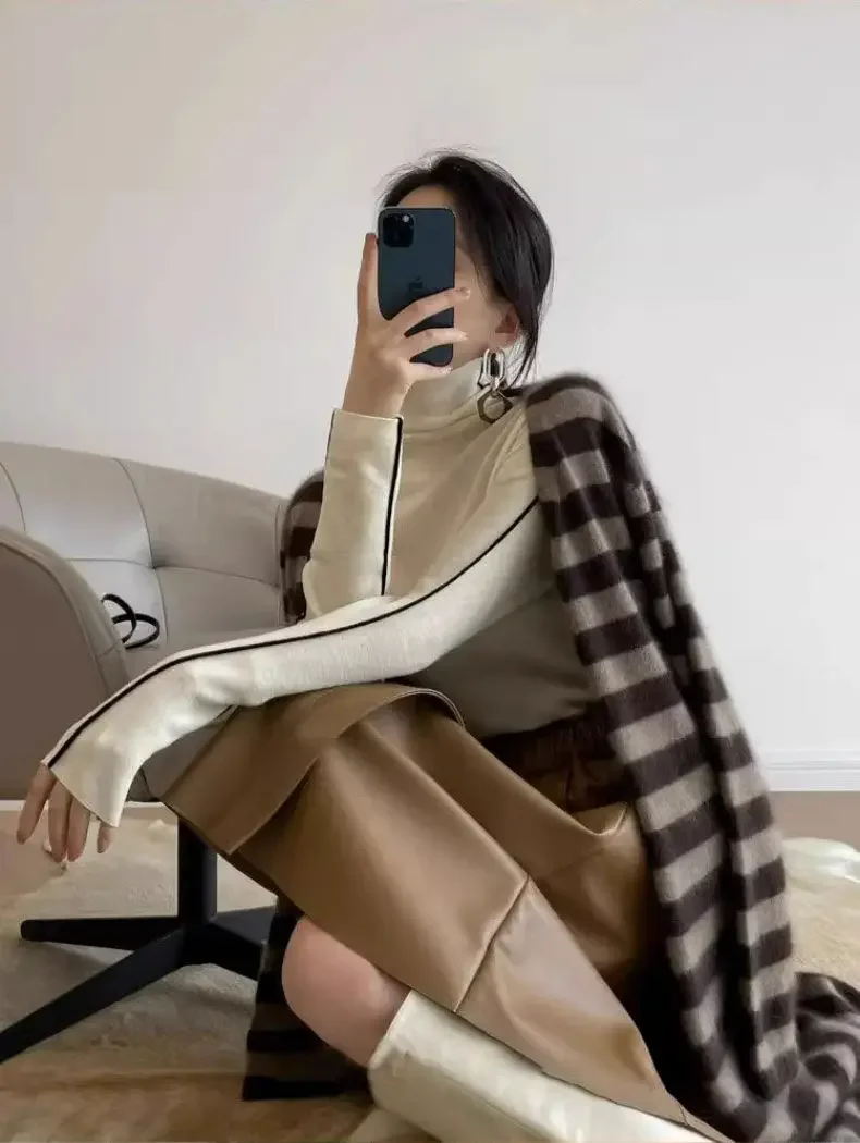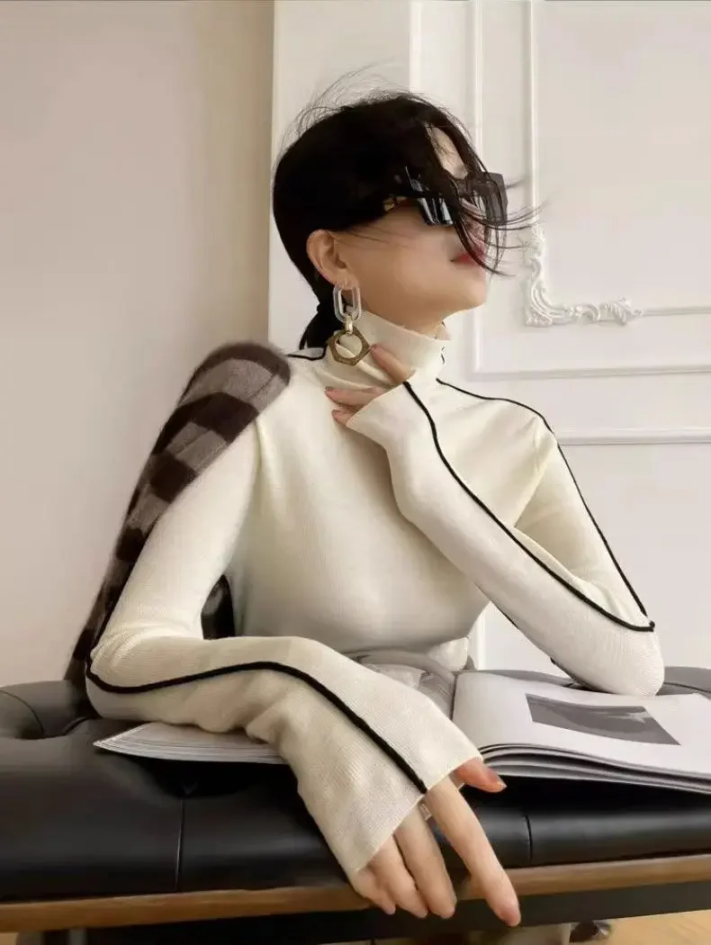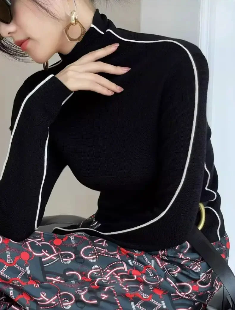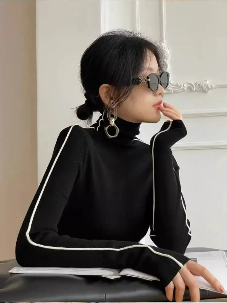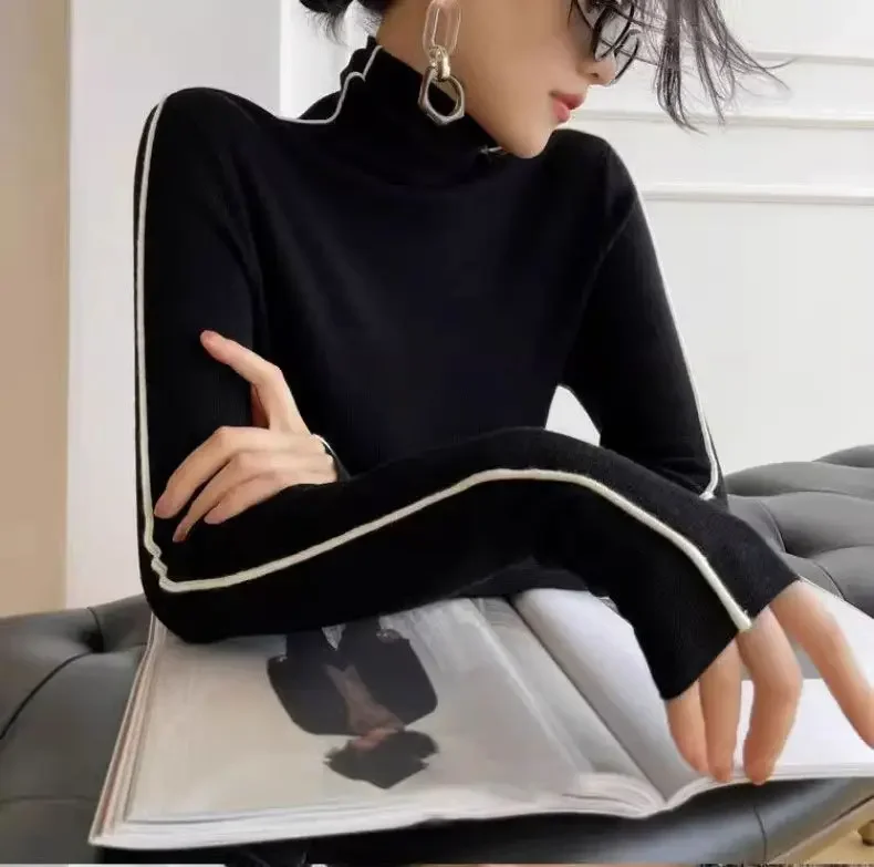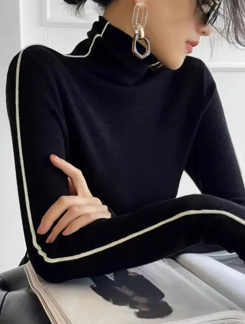 Fashion Turtleneck Pullover For Women Slim Fit Long Sleeved Top Elegant Office Lady Sweaters