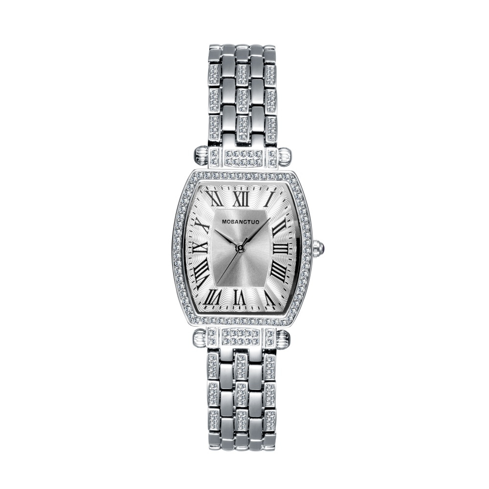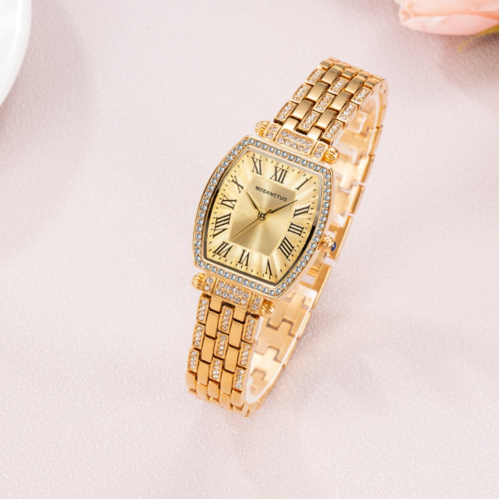 Stylish Women's Timepiece with Steel Band And Roman Numerals, Unique Tonneau-Shaped Case, Quartz Movement