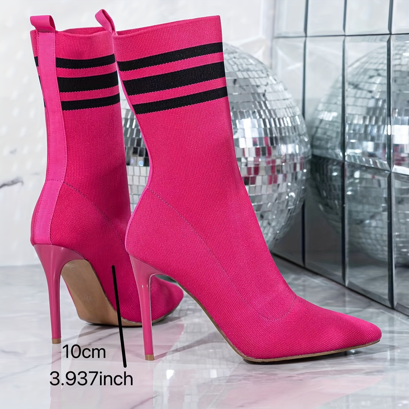 Women's Elegant Temperament Black Stiletto Heeled Boots Sock Boots Pointed Toe Stiletto Heeled Boots