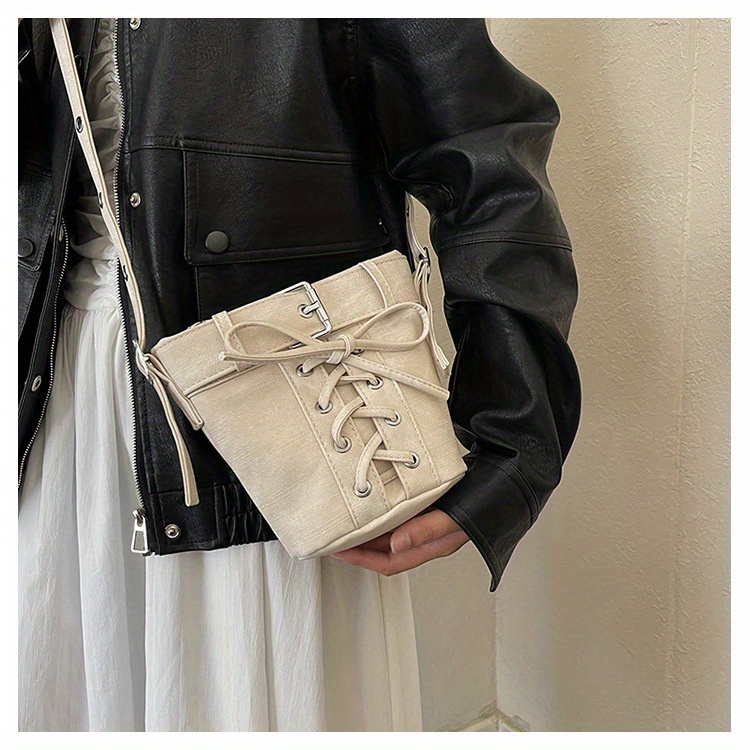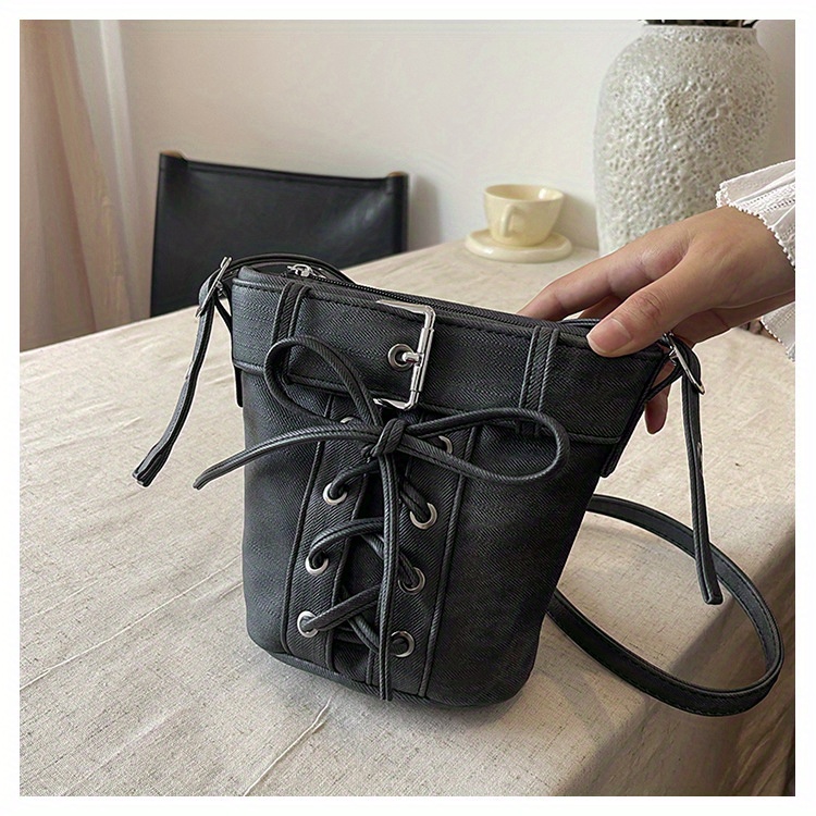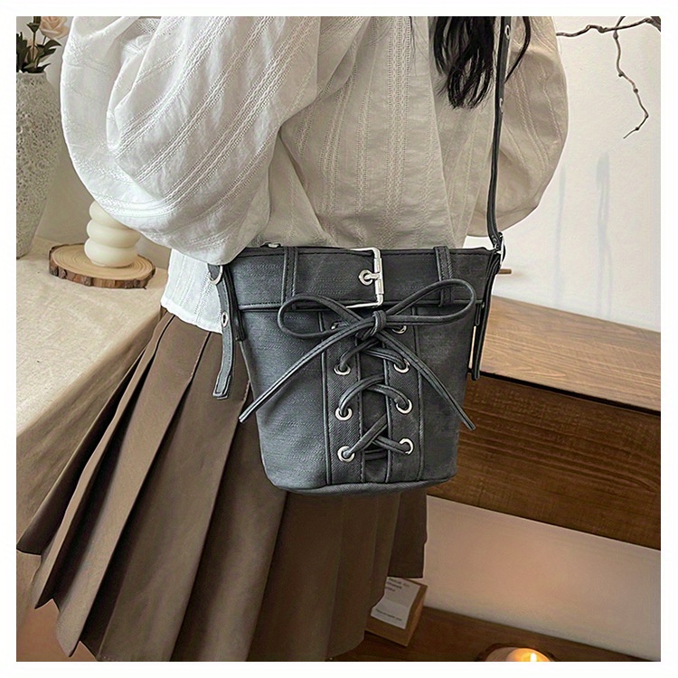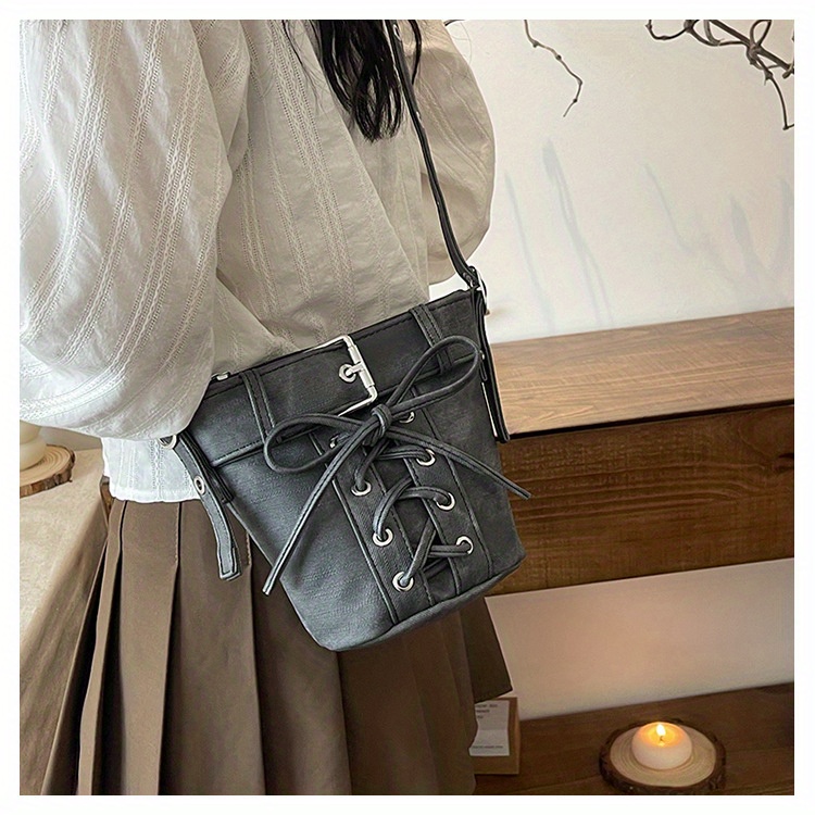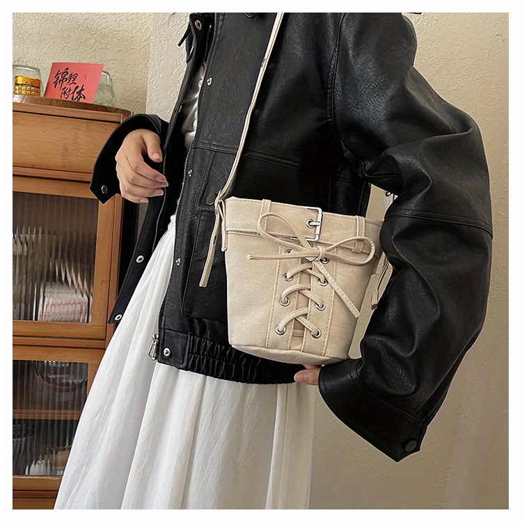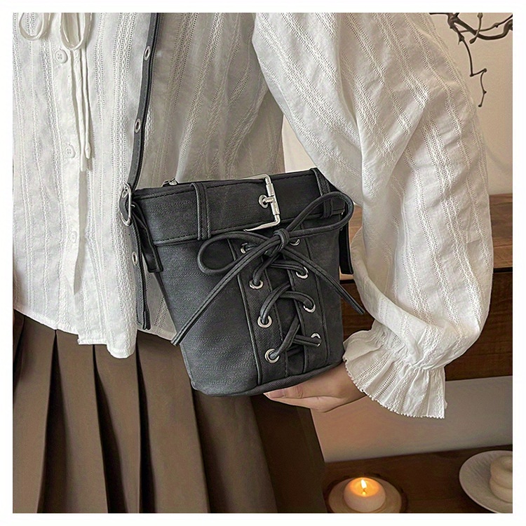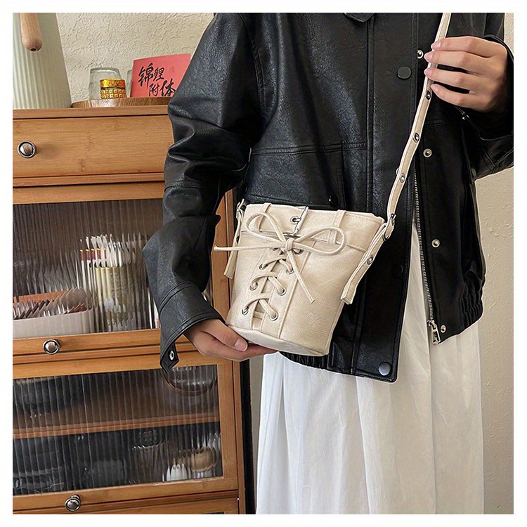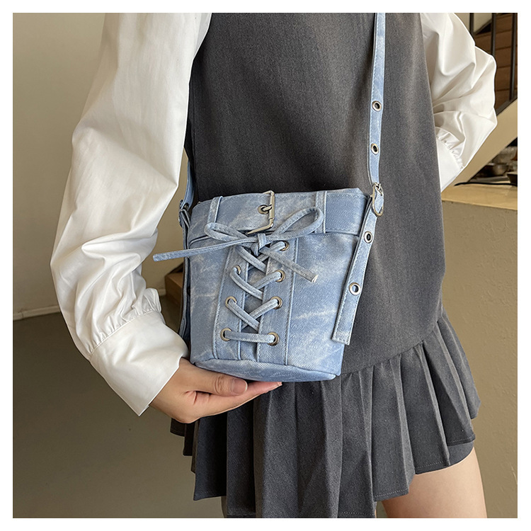 Women's Fashion Crossbody Bag, Vintage Simple Style, Bowknot Design, Denim Bucket Bag, Durable Travel Shoulder Bag Washable or Dry Clean, Oil-Edged, Polyester Lining, Zip Closure
