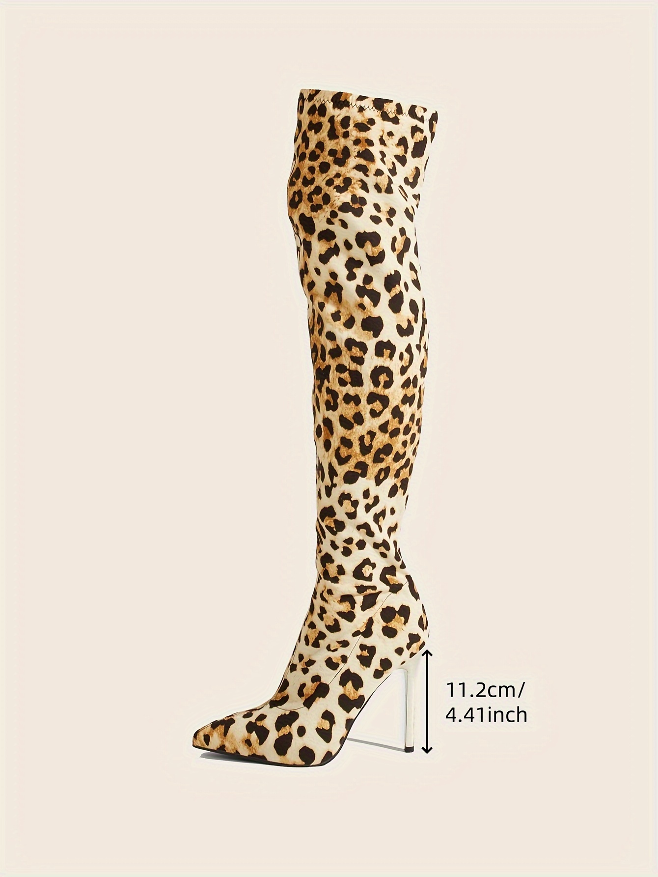 Women's Leopard Print Stiletto Heel Boots - Sexy Slip-On Over-the-Knee Fashion Boots with Pointed Toe and Elastic Fabric Upper for All Seasons