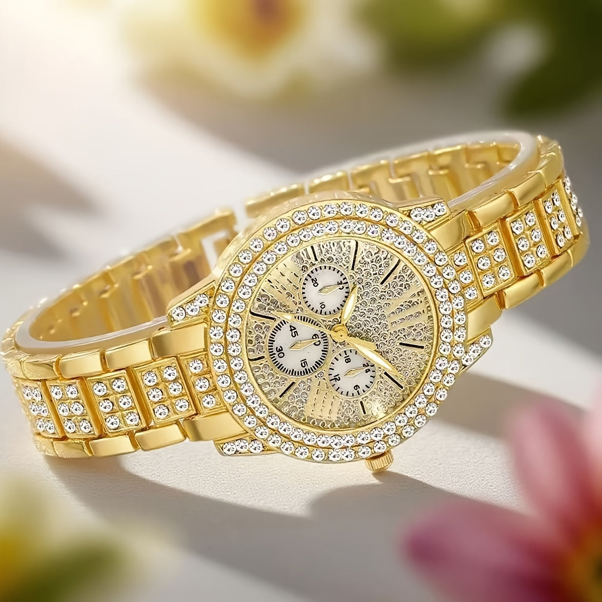 Women's Quartz - Elegant Round Face with Golden-Tone Dial, Hands & Roman Numerals, Golden-Tone & Band
